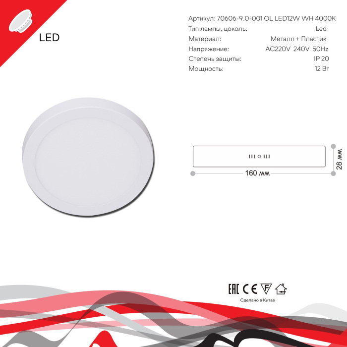 Светодиодная панель 70606-9.5-001OL LED12W WH 4000K