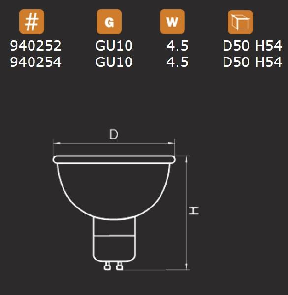 Лампочка светодиодная LED 940254 / K / Вт / GU10