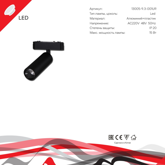 Трековый светильник 13005-9.3-001UR magnetic LED15W BK