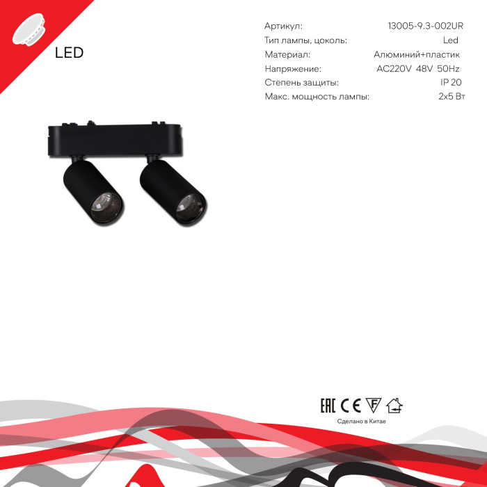 Трековый светильник 13005-9.3-002UR magnetic LED2x5W BK