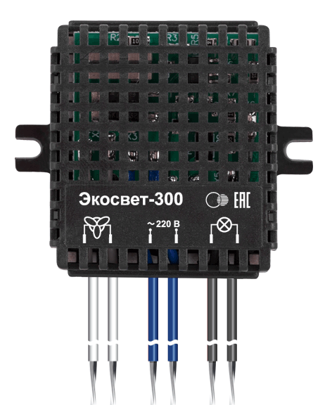 Блок энергосберегающий «Экосвет-300» предназначен для автоматического включения и выключения вытяжной вентиляции санузла. Таймер включает вентилятор через 1 минуту после включения освещения и отключает вентилятор через 5 минут после выключения света.